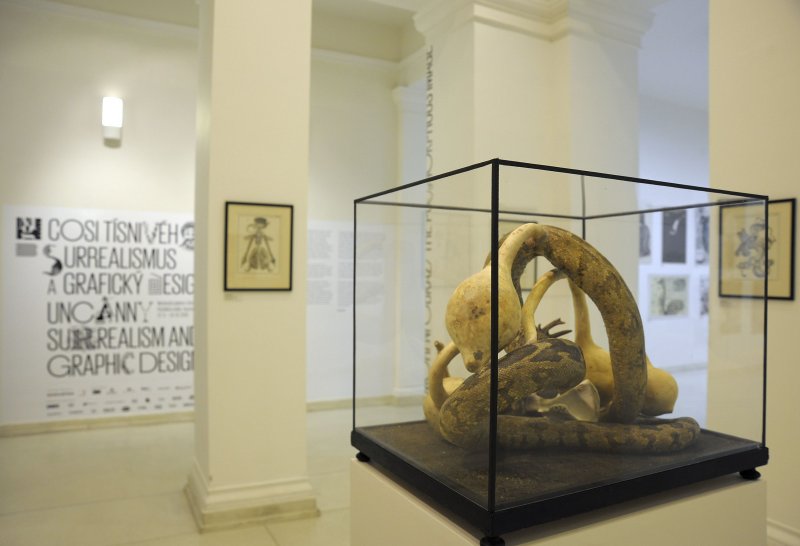 Zastavení první: Cosi tísnivého. Hostující kurátor Rick Poynor prošel dějiny výtvarného surrealismu od 20. let po současnost a dohledal výstupy této estetiky v knize, časopise, plakátu. Jedinečný mix fantazie, humoru a podivností tu dostává své konkrétní podoby v dílech domácích klasiků jako Jindřich Štyrský, Karel Teige nebo Jan Švankmajer, i současných zahraničních autorů, mezi nimiž vynikají Američané Edward Fella a Stefan Sagmeister.