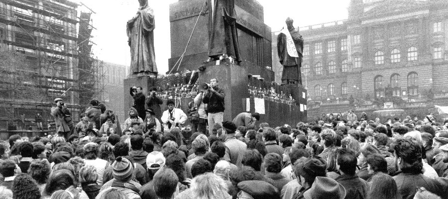 ...neboli dvě mohutné demonstrace ve dnech 25. a 26. listopadu 89. V těchto dnech se zde (v obou případech) sešlo kolem 800 tisíc lidí. Tato mohutná shromáždění, na kterých vystoupila celá řada představitelů končícího a současně vznikajícího režimu, jsou označována za zlomový moment celého převratného listopadového děni. Odsud se začal odvíjet dialog odcházejících s nastupujícími.