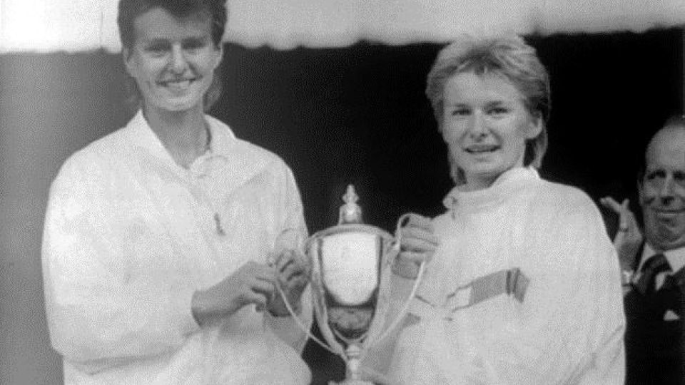 Dnešní návrat do roku 1989 začneme zase pro jednou zprávou radostnou. Ocitáme se v prvním červencovém týdnu, tedy v době, kdy tradičně vrcholí nejslavnější grandslamový tenisový turnaj světa – Wimbledon. S pohárem v ruce vidíme na snímku dvojici našich tenistek Helenu Sukovou a Janu Novotnou.
