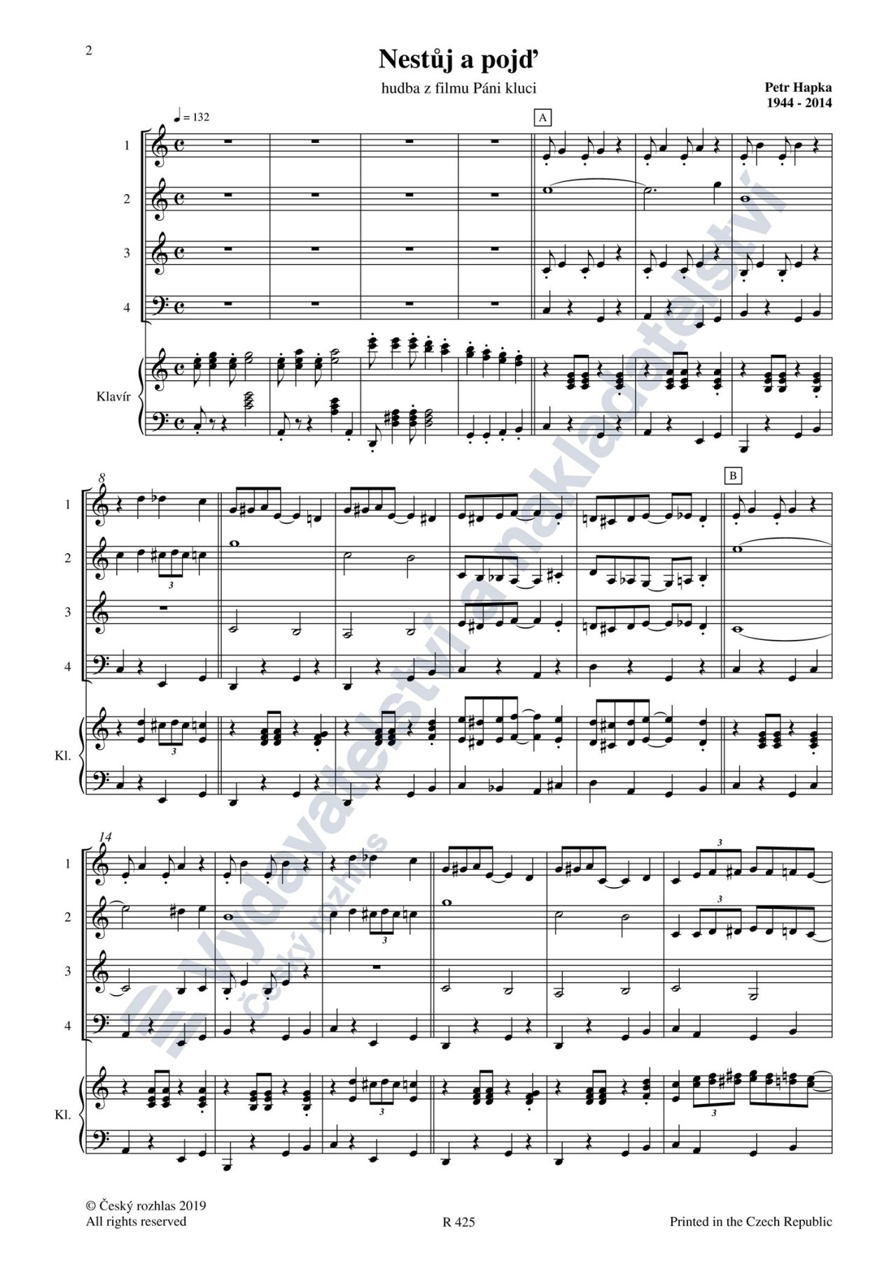 Další skladby Petra Hapky vydané hudebním Vydavatelstvím a nakladatelstvím Českého rozhlasu: