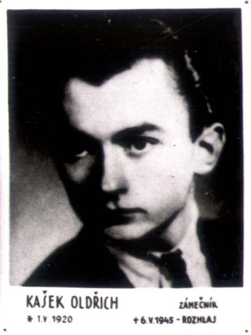Zámečník Oldřich Kašek byl nejprve nezvěstný. Dnes 5. května 1945 v 11.30 odešel ze svého bytu směrem k rozhlasu. Při přestřelce byl usmrcen a uložen v domě Schwerinova 6. V úterý 8. května 1945 bylo jeho tělo odvezeno neznámo kam. Oznámení učinila jeho manželka Milada Kašková. Dle fotografie jej později mezi neznámými padlými identifikovala jeho matka Antonie Kašková.