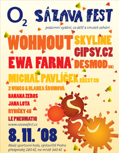 Zítra 8. listopadu, už počtvrté, opět plný aktuálních hvězd a zase (i když neplánovaně) v Abatonu. Takto by se dal velmi stručně popsat další díl podzimních hudebních radovánek akce, která ve svém názvu postupně přešla od Klubobraní přes nesmělé "Klubobraní alias Sázavafest" až po Podzimní Sázavafest.