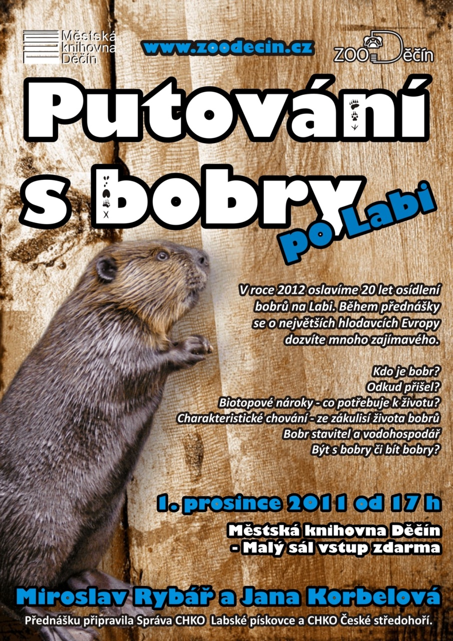 Povídat o nich přijdou pracovníci Správy CHKO Labské pískovce a České středohoří Miroslav Rybář a Jana Korbelová. Dozvíte se například, kdo je bobr, odkud přišel, jaké má biotopové nároky, jak se chová, jaký je stavitel a vodohospodář a jak bobry chránit.