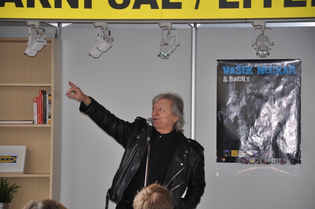 Nejprve se u stánku Českého rozhlasu uskutečnila autogramiáda a asi po hodině následovalo v Literárním sále hodinové vystoupení bratrů Neckářových. Jak velký zájem byl o obě akce můžete vidět na fotografiích z pátku 18. května.