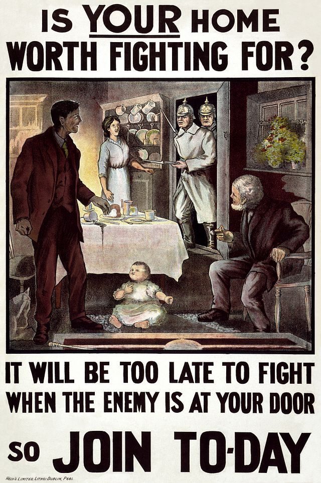 Vykreslit nepřítele jako kruté krvelačné monstrum. Bestii, která nemá slitování ani se ženami, starci, dětmi. Je jediným viníkem rozpoutání války. A celá společnost se musí proti ní semknout v boji za ochranu svých morálních hodnot i domovů. První světová válka byla prvním konfliktem, který se s plným nasazením vedl nejen v rovině vojenské, ale i ekonomické a propagandistické.