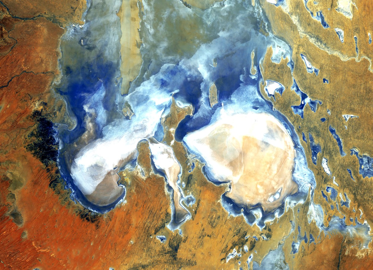Bezodtoké Eyreovo jezero v poušti na jihu Austrálie, často i několik let vyschlé, se díky silným dešťům zase plní vodou. Kolem jezera, které je většinou jen slaniskem nebo suchou slanou pánví, se začíná objevovat zeleň a živočichové. Nejvíc vody je zatím v zálivu Belt Bay – necelé dva metry. K mrakům i přitékajícím řekám vzhlížejí s nadějí členové místního jachtařského klubu, který při dostatečném množství vody pořádá na jezeře oblíbené regaty.