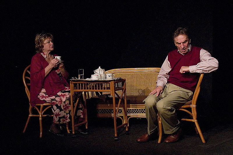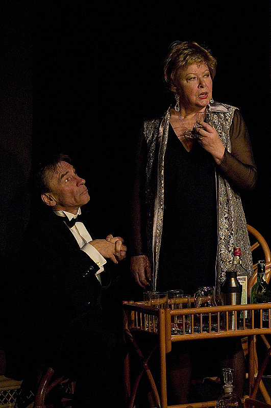 Když se úspěšný a bohatý spisovatel Cecil v novinách dočte o úmrtí manžela Evelyny, kterou v mládí miloval, okamžitě ji k sobě pozve na návštěvu a chce jí nabídnout sňatek. František Němec vtiskl tomuto egoistickému, nicméně vtipem a fantazií oplývajícímu sedmdesátiletému mládenci bystrost, ale zároveň i jistou topornou neohrabanost, z níž přímo čiší Cecilova nezkušenost s jakýmkoli dlouhodobějším partnerským vztahem. Tento nedostatek samozřejmě Evelyna - v podání Aleny Vránové realistka s jasnozřivou emapatií - rychle rozpozná a Cecilovu zpožděnému tokání odolává i v situaci, kdy už vědomí i pohyby všech tří postav ovládá whisky. Onou třetí a vlastně nejtajemnější figurou je Cecilův komorník Hawkins. Co Petr Kostka dokáže o figuře tohoto decentního sluhy sdělit, ač je kvůli jejím krátkým replikám odkázán převážně jen na tón hlasu, gesta a jemnou mimiku, vytváří velmi bohatý podtext. Tak zajímavý, že jím jsou dynamizovány všechny vztahy neobvyklého trojúhelníku a divák zůstává v napětí až do samého konce.
